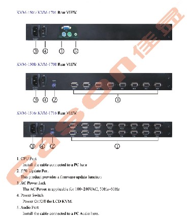 KVM-19016: 19" XGA TFT LCD/解析度1280X1024/16口三合一多功能切換器