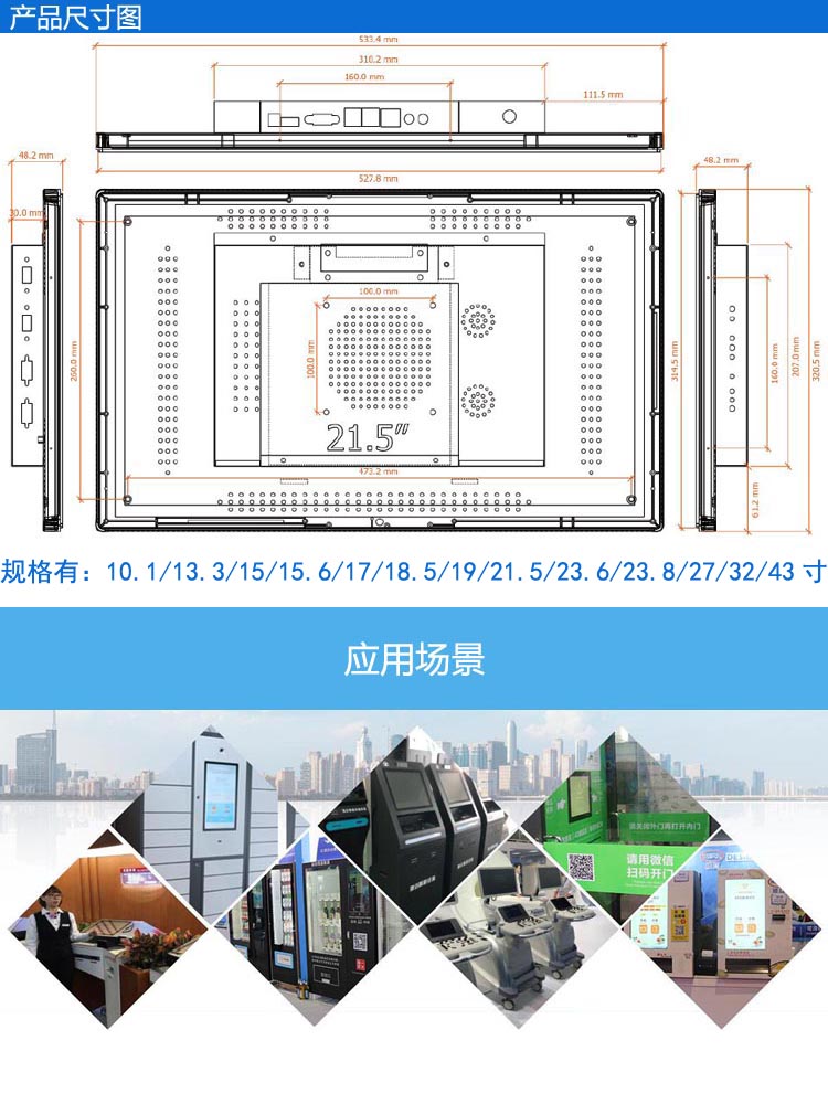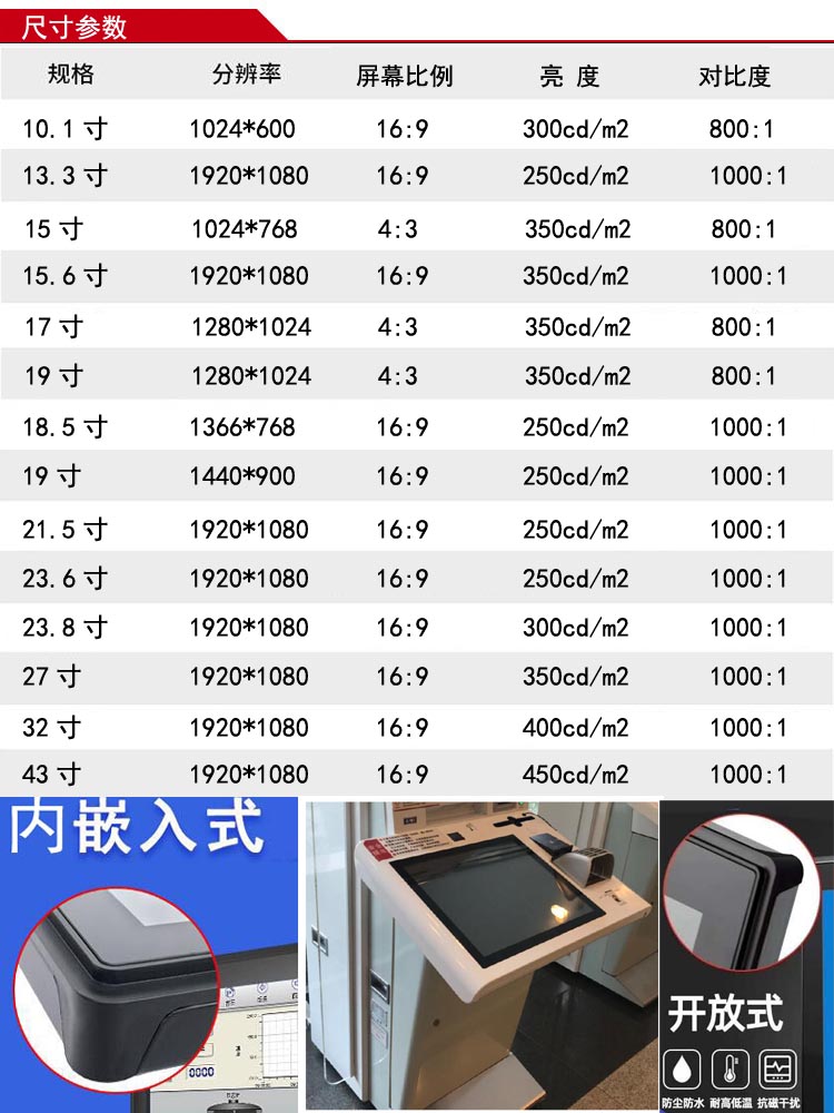 10.1/13.3/15/15.6/17/18.5/19/21.5/23.6/23.8/27/32/43寸
